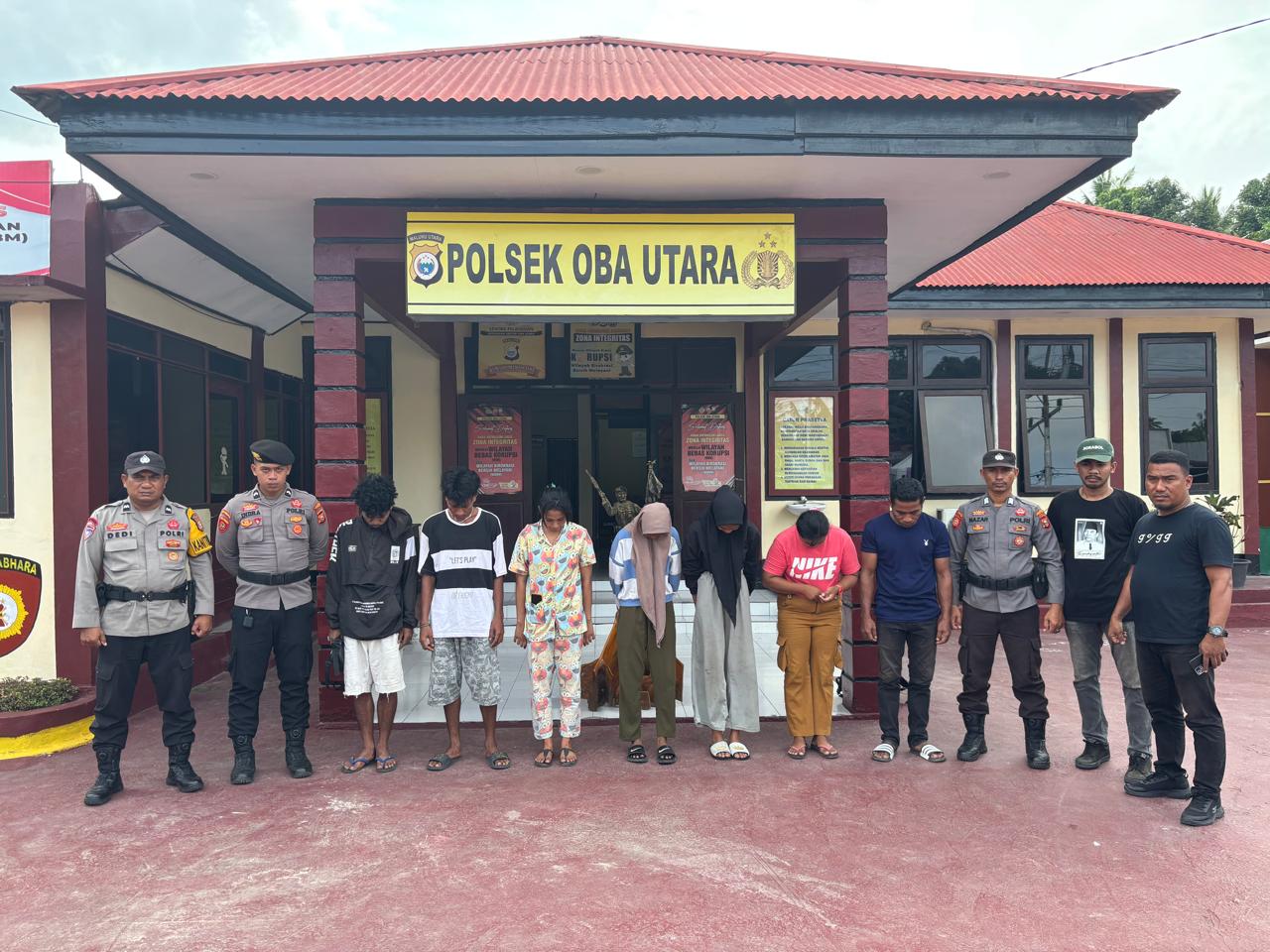 Ketujuh orang yang diamankan masing-masing berinisial M (21), Y (20), E (17), N (17), W (16), S (41), dan J (35). Mereka langsung dibawa ke Mapolsek Oba Utara untuk dimintai keterangan lebih lanjut.