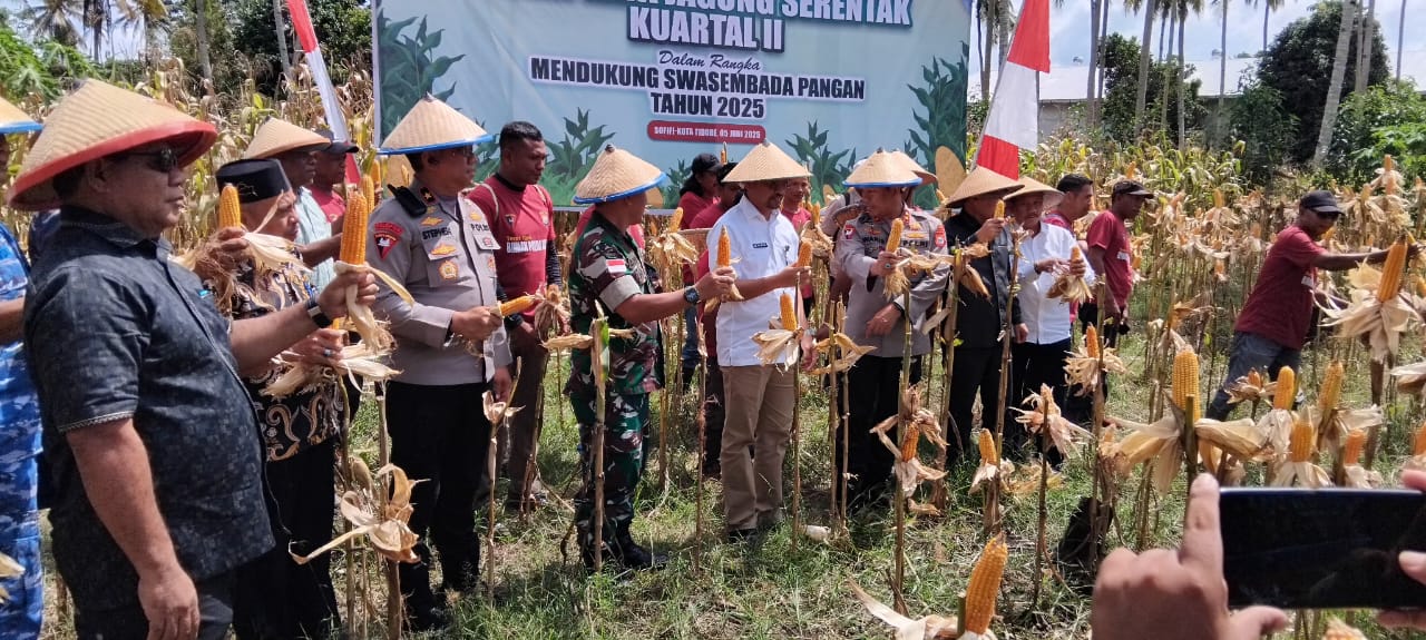 SOFIFI – Kepala Kepolisian Daerah (Kapolda) Maluku Utara, Irjen Pol Waris Anggono, menghadiri kegiatan Panen Raya Serentak Jagung Kuartal II di Desa Oba, Kecamatan Oba Utara, Kamis (5/6/2025). Kegiatan ini merupakan bagian dari upaya mendukung program swasembada pangan nasional.