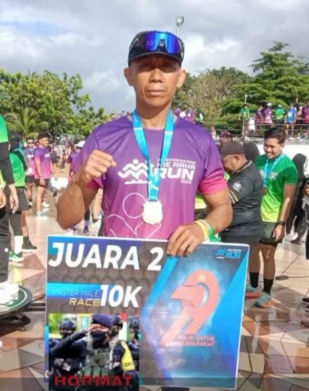 TERNATE – Prestasi membanggakan ditorehkan Aipda Erwin M. Nasalawo, anggota Polsek Oba Utara, Polresta Tidore Kepulauan. Ia berhasil meraih juara dua dalam lomba lari 10 kilometer kategori master pria yang digelar Polda Maluku Utara dalam rangka memperingati Hari Bhayangkara ke-79.