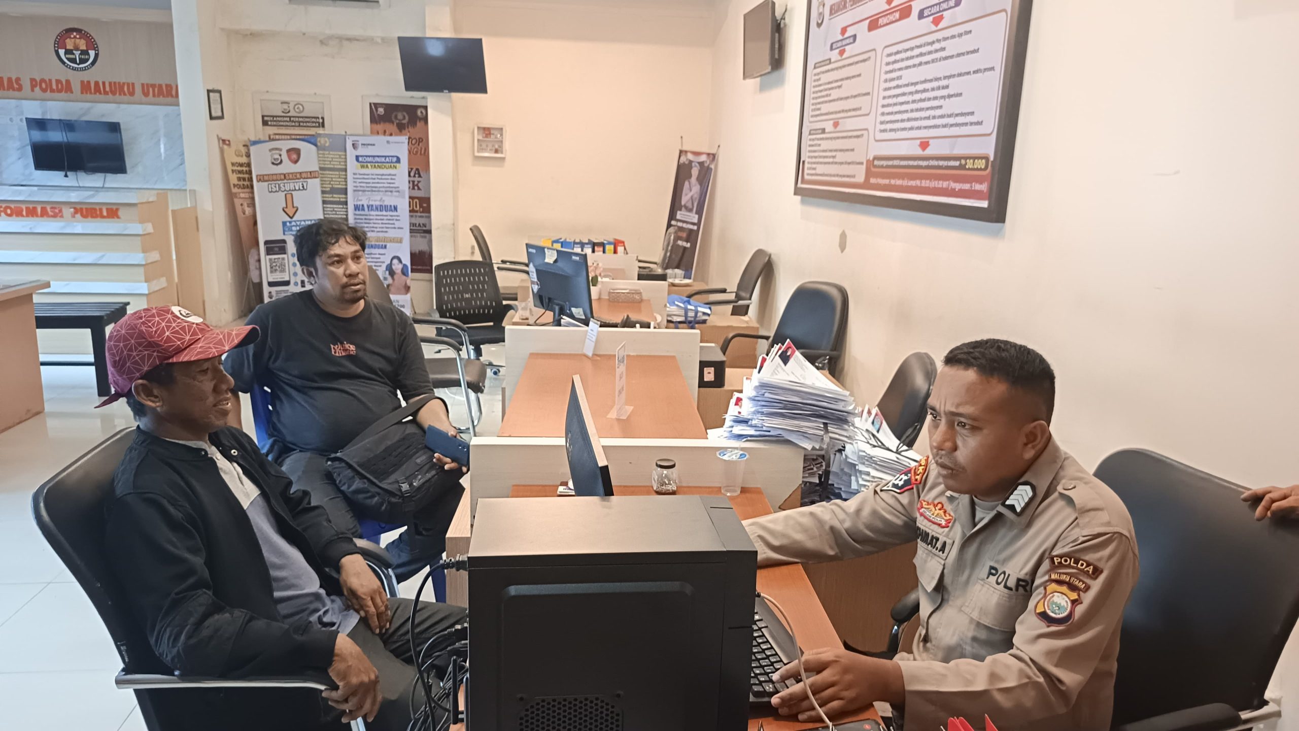 Amir mendatangi SPKT Polda bersama kuasa hukum dari Majelis Rakyat Sofifi (MARKAS) untuk melaporkan langsung kejadian tersebut.