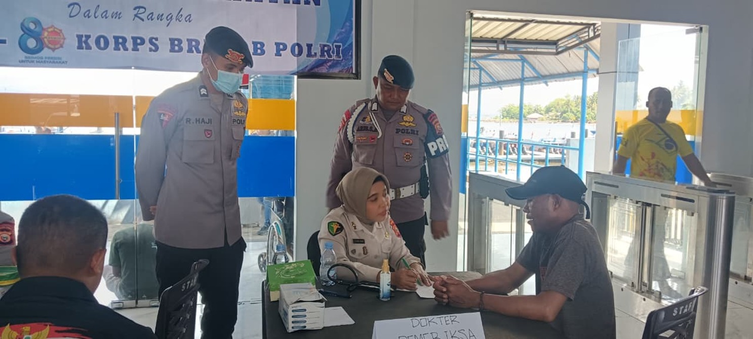 SOFIFI – Dalam rangka memperingati Hari Ulang Tahun ke-80 Korps Brimob Polri, Satuan Brimob Polda Maluku Utara bekerja sama dengan Kantor Syahbandar Sofifi menggelar kegiatan pemeriksaan kesehatan gratis bagi masyarakat di Kelurahan Sofifi, Kecamatan Oba Utara, Kota Tidore Kepulauan, Senin (4/11/2025).
