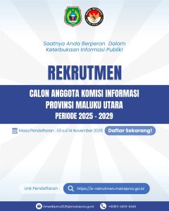 SOFIFI – Kabar baik bagi masyarakat Maluku Utara yang ingin berkontribusi dalam penguatan keterbukaan informasi publik. Tim Seleksi (Timsel) Calon Anggota Komisi Informasi Provinsi Maluku Utara periode 2025–2029 resmi memperpanjang masa pendaftaran hingga 22 November 2025.