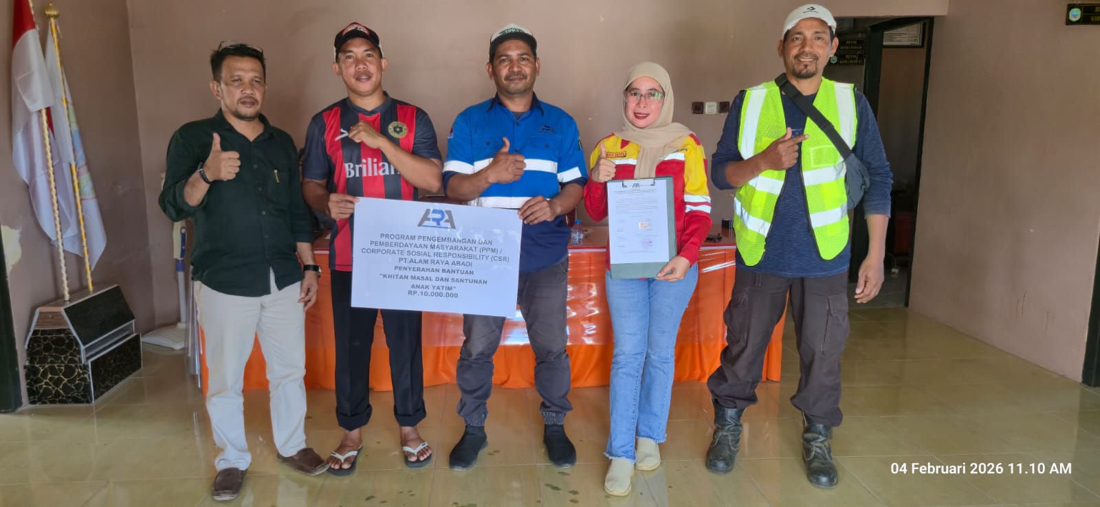 Perwakilan PT Alam Raya Abadi menyampaikan bahwa bantuan ini merupakan bagian dari komitmen perusahaan dalam menjalankan tanggung jawab sosial sekaligus membangun hubungan harmonis dengan masyarakat di sekitar wilayah operasional.