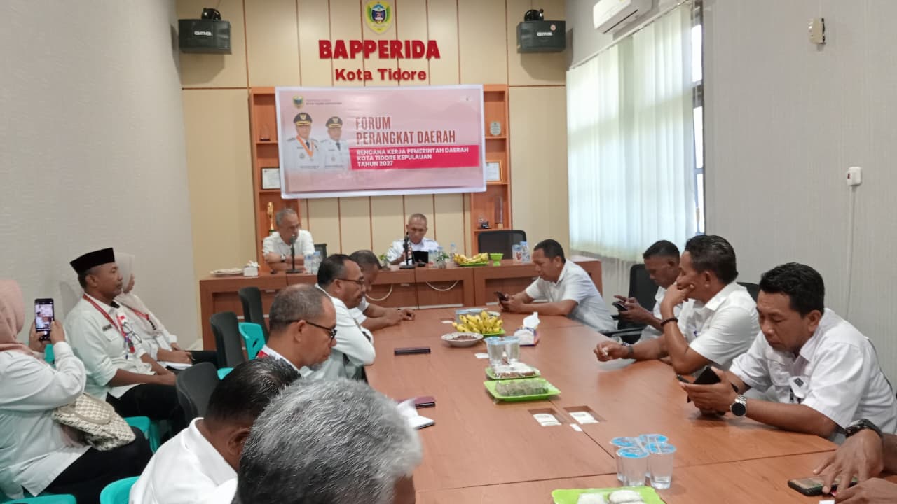 Hal tersebut disampaikan Asisten Sekda Bidang Perekonomian Dan Pembangunan Taher Husain pada pembukaan kegiatan Forum Perangkat Daerah RKPD Kota Tidore Kepulauan Tahun 2027 di Ruang Rapat Kantor Badan Perencanaan Pembangunan Riset dan Inovasi Daerah (Bapperida) Kota Tidore Kepulauan (11/2/2026).