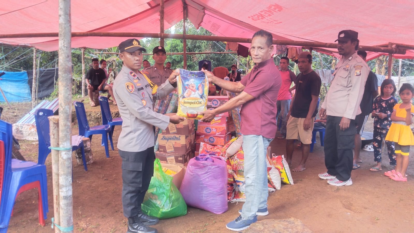 Bantuan tersebut diberikan kepada warga yang saat ini mengungsi di SD Inpres 27 Halbar, Desa Kedi, serta di lokasi pengungsian mandiri Dusun Sario, Kecamatan Loloda. Penyerahan bantuan dilakukan secara simbolis oleh Kapolsek Loloda, IPDA Ibrahim La Ja’a, kepada Kepala Desa Totala Jaya dan perwakilan warga pengungsi.