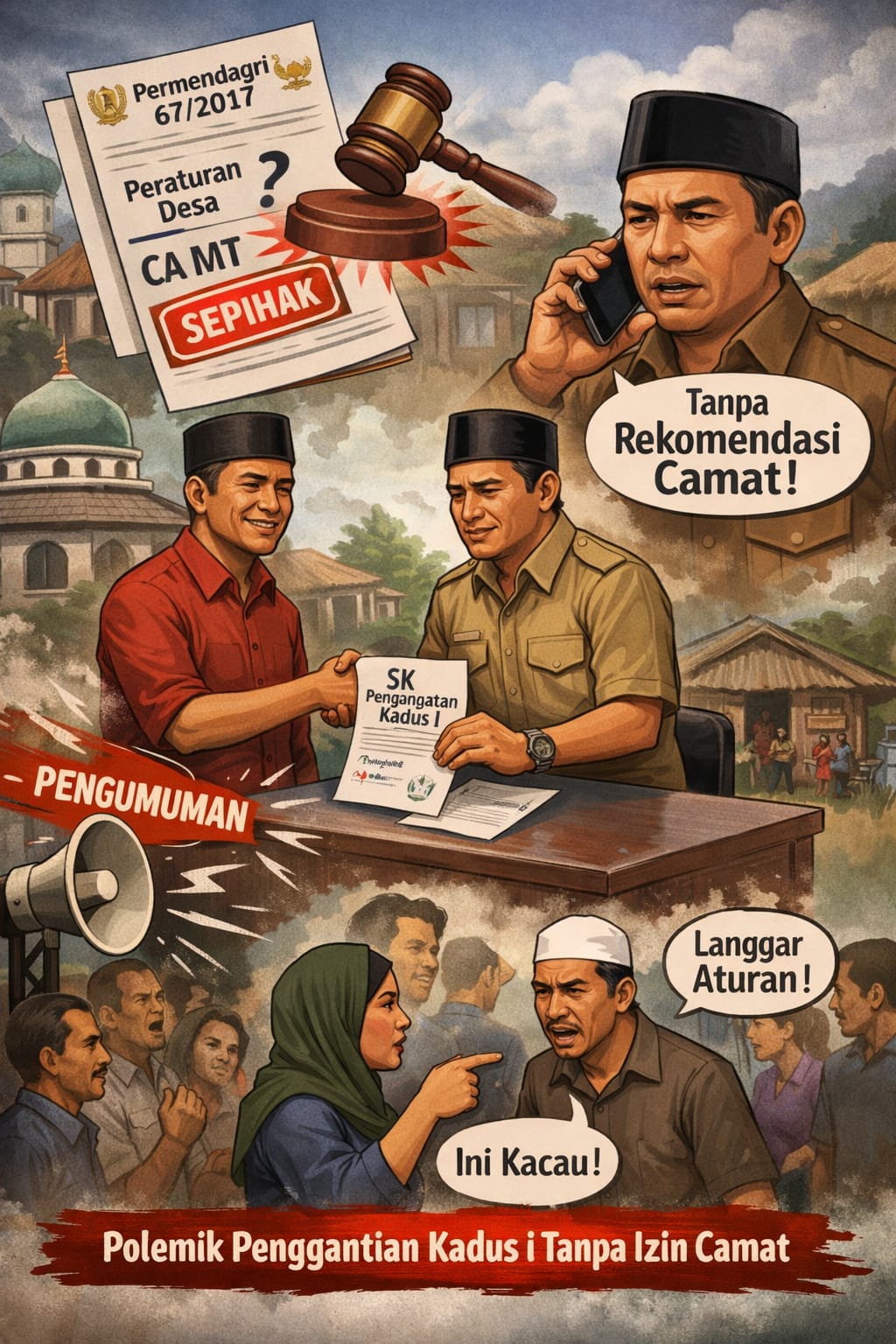 Menurutnya, setiap pergantian perangkat desa harus melalui prosedur dan pemberitahuan resmi sesuai ketentuan perundang-undangan.