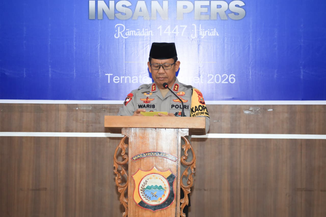 Kapolda Maluku Utara menggelar kegiatan buka puasa bersama dengan insan pers di Aula Polres Ternate, Sabtu (14/3/2026). Kegiatan tersebut dilaksanakan sebagai bentuk mempererat silaturahmi sekaligus memperkuat sinergitas antara Polri dan media dalam menjaga stabilitas keamanan dan ketertiban masyarakat (kamtibmas).