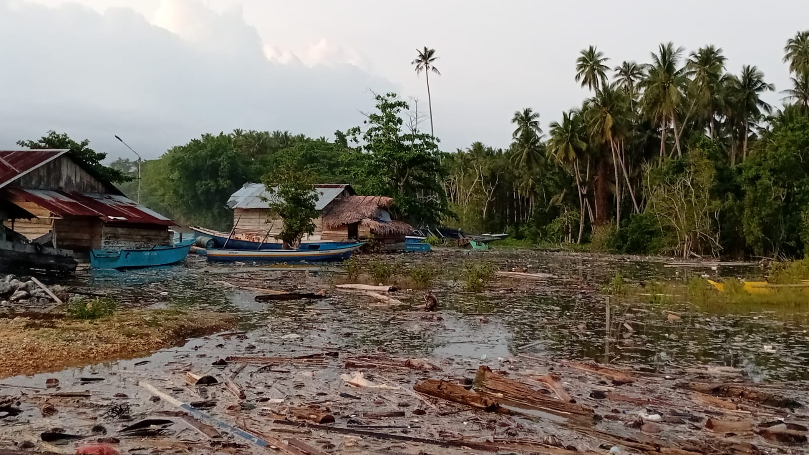 HALTIM – Cuaca buruk yang melanda Desa Tongone, Kecamatan Wasile Utara, Kabupaten Halmahera Timur, dalam beberapa minggu terakhir mengakibatkan gelombang tinggi menghantam kawasan pesisir hingga air laut masuk ke permukiman warga sejauh kurang lebih 100 meter dari garis pantai, Selasa (17/03/2026).