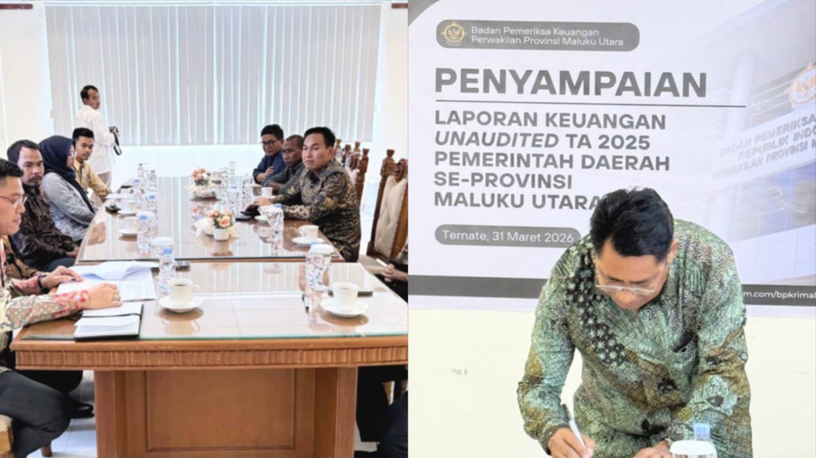 HALTIM — Pemerintah Kabupaten Halmahera Timur (Haltim) kembali menunjukkan komitmennya terhadap transparansi dan akuntabilitas dalam pengelolaan keuangan daerah. Hal ini dibuktikan dengan penyerahan Laporan Keuangan Pemerintah Daerah (LKPD) Tahun Anggaran 2025 kepada Badan Pemeriksa Keuangan (BPK) RI Perwakilan Maluku Utara, Selasa (31/3/2026).