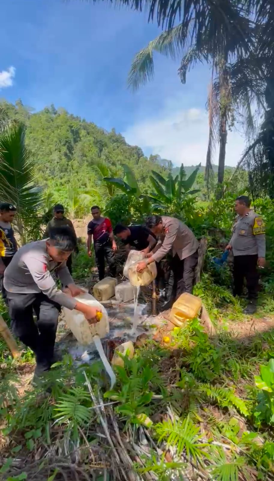 Tidore – Upaya pemberantasan peredaran minuman keras terus dilakukan jajaran kepolisian. Kali ini, Polsek Oba berhasil memusnahkan sebanyak 250 liter saguer yang diduga akan diolah menjadi minuman keras jenis cap tikus dalam razia yang digelar pada Rabu (8/4/2025).