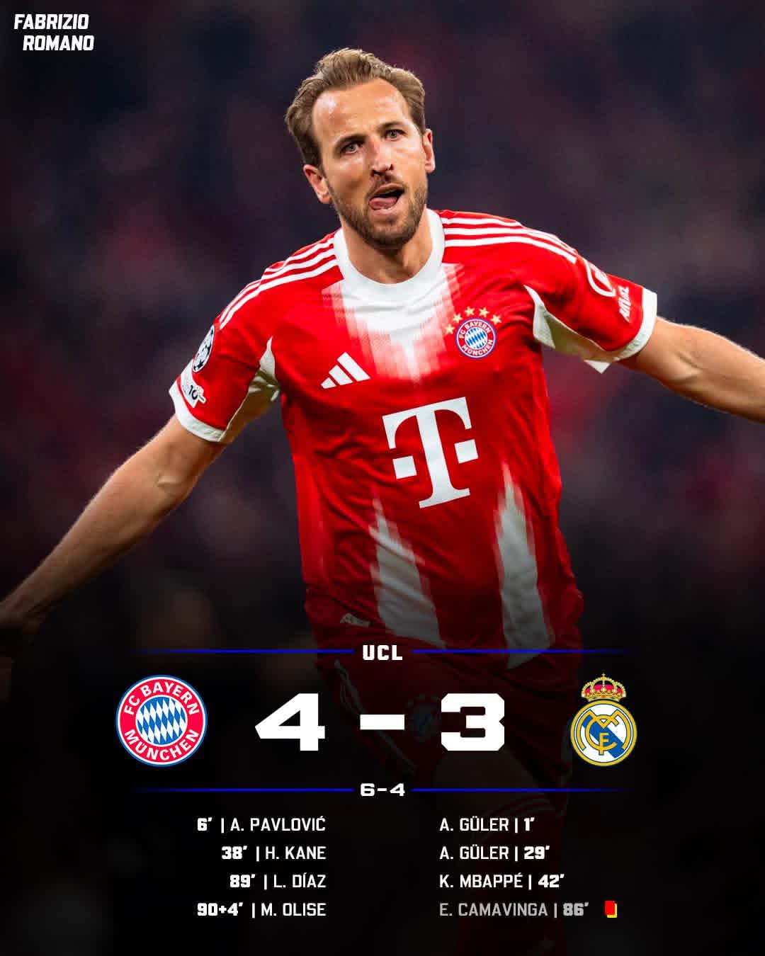 Madrid kembali unggul di pertengahan babak pertama lewat gol kedua Güler melalui tendangan bebas indah yang tak mampu dijangkau Neuer. Bayern tak tinggal diam—Harry Kane sukses mencetak gol penyeimbang agregat setelah memaksimalkan umpan terobosan dari Dayot Upamecano.